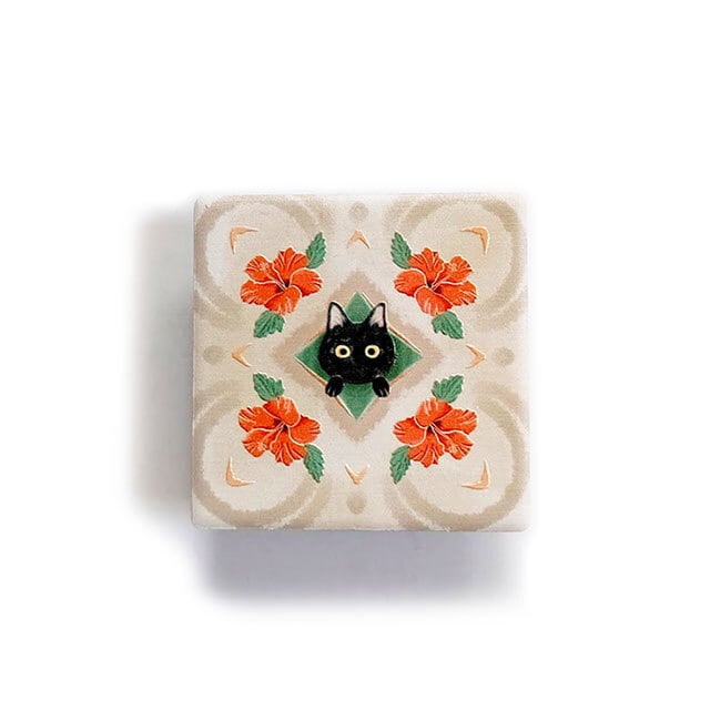 猫や犬をモチーフにしたレトロなポルトガルタイル風のマグネットです。
