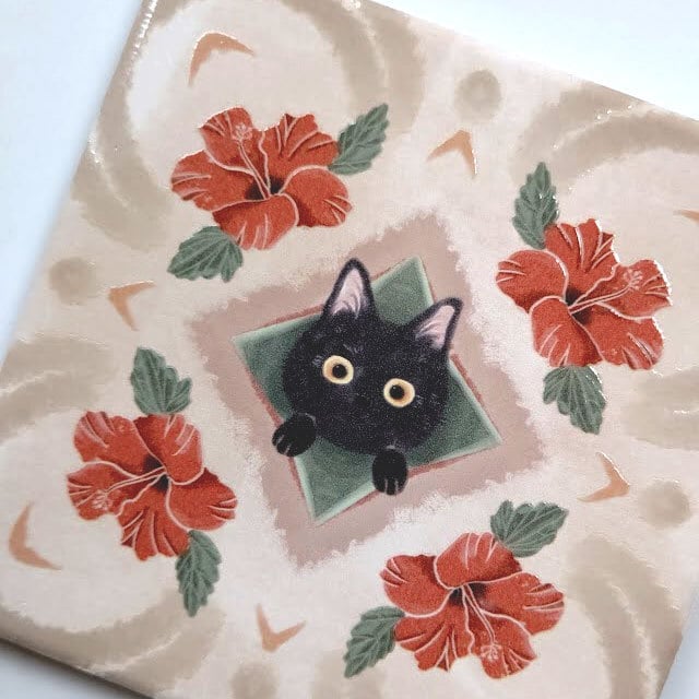 花柄のタイルの真ん中から顔をのぞかせる猫や犬がワンポイントになって、すごくカワイイです。