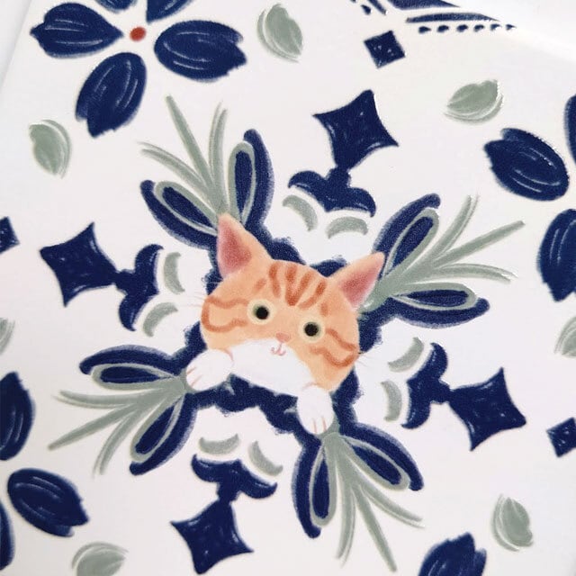 猫や犬をモチーフにしたレトロなポルトガルタイル風のセラミック吸水コースターです。