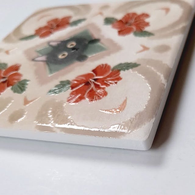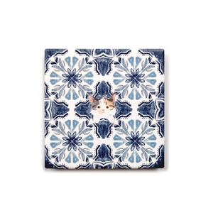猫や犬をモチーフにしたレトロなポルトガルタイル風のセラミック吸水コースターです。