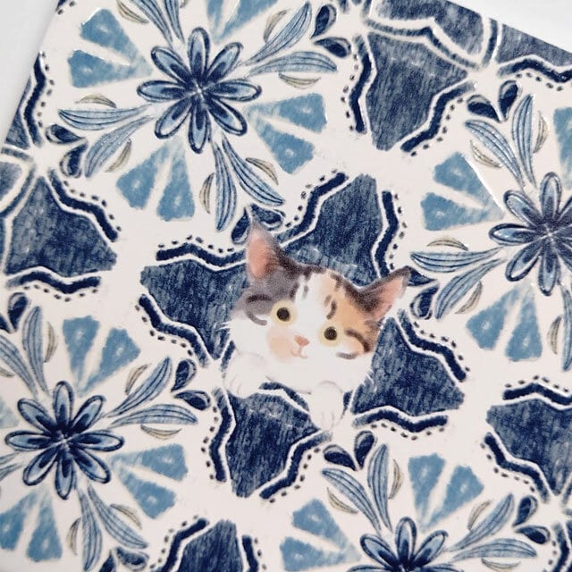 花柄のタイルの真ん中から顔をのぞかせる猫や犬がワンポイントになって、すごくカワイイです。