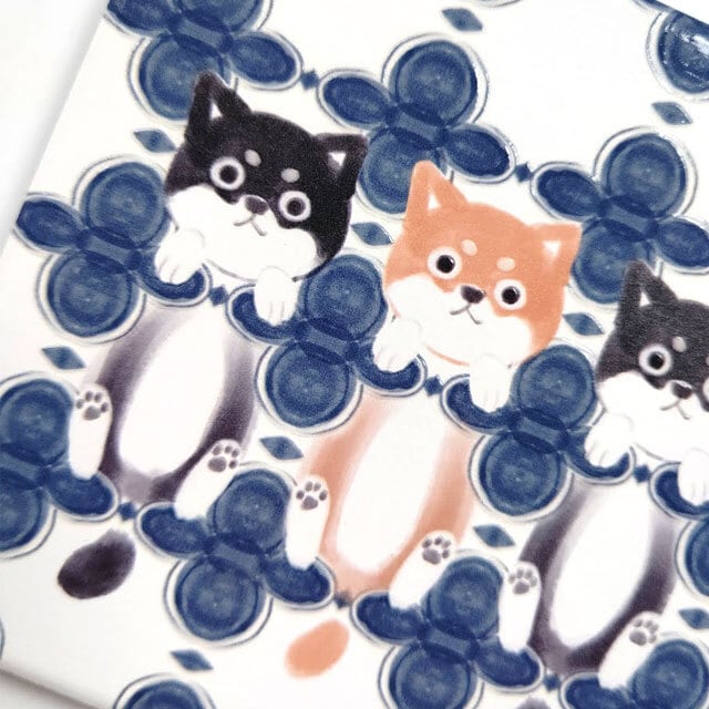 花柄のタイルの真ん中から顔をのぞかせる猫や犬がワンポイントになって、すごくカワイイです。