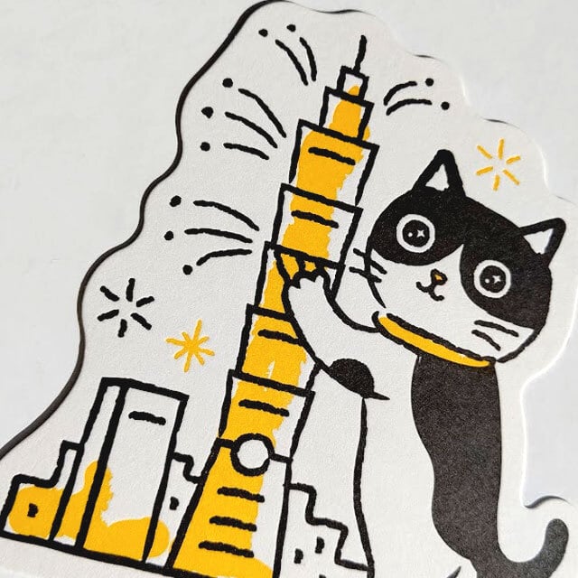 ダイカット 活版印刷 猫ポストカード(TAIPEI101)