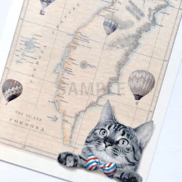 旅と冒険をコンセプトに、台湾古地図と猫がコラボしたポストカードです。