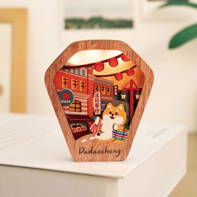 可愛い猫と犬がモチーフの木製のマグネットライトです。