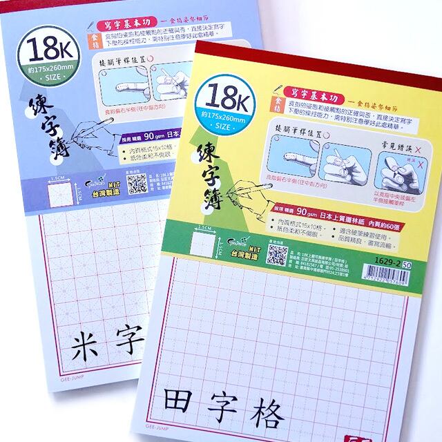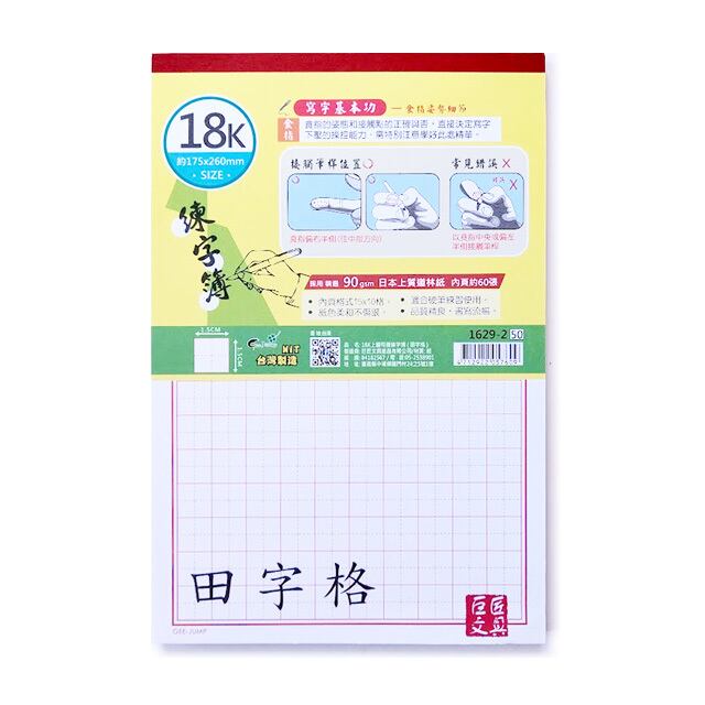 18K硬筆練習本(練習ノート)田字格