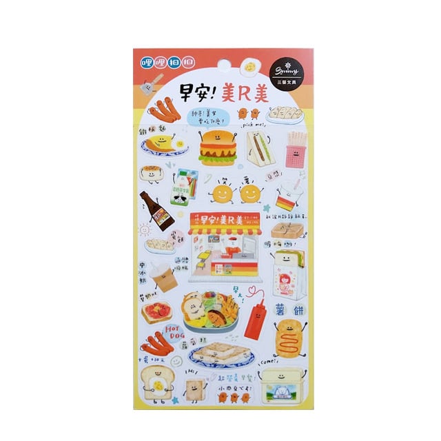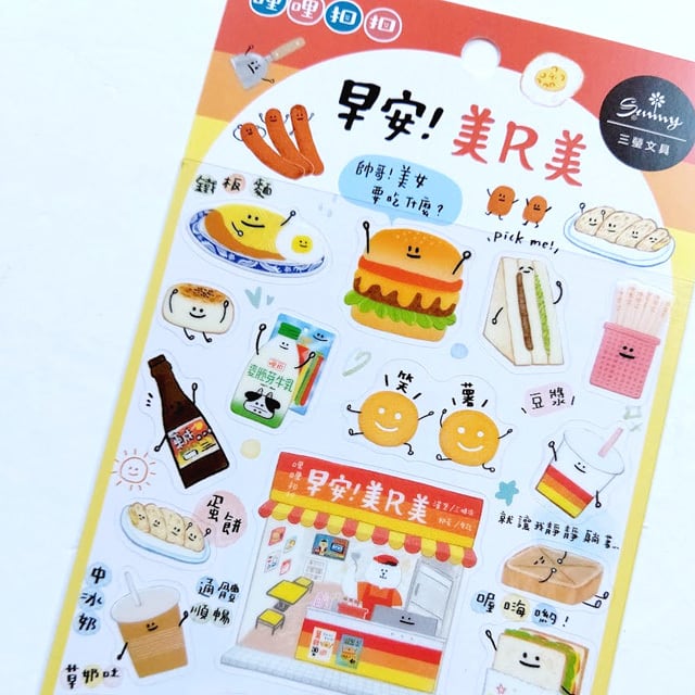 台湾の朝ごはんの定番は朝食店! サンドイッチやダンピン、大根餅などなど美味しい数々がシールになりました。