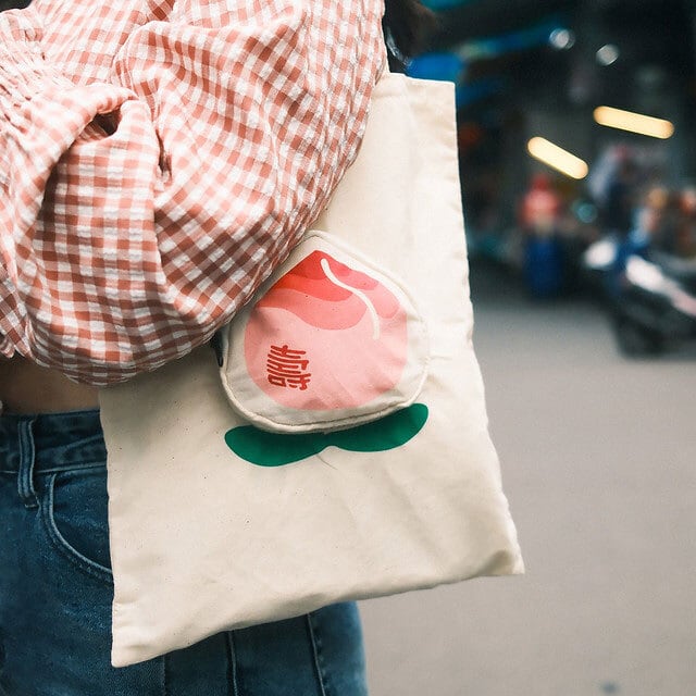 台湾 キャンバストート 収納付(寿桃)